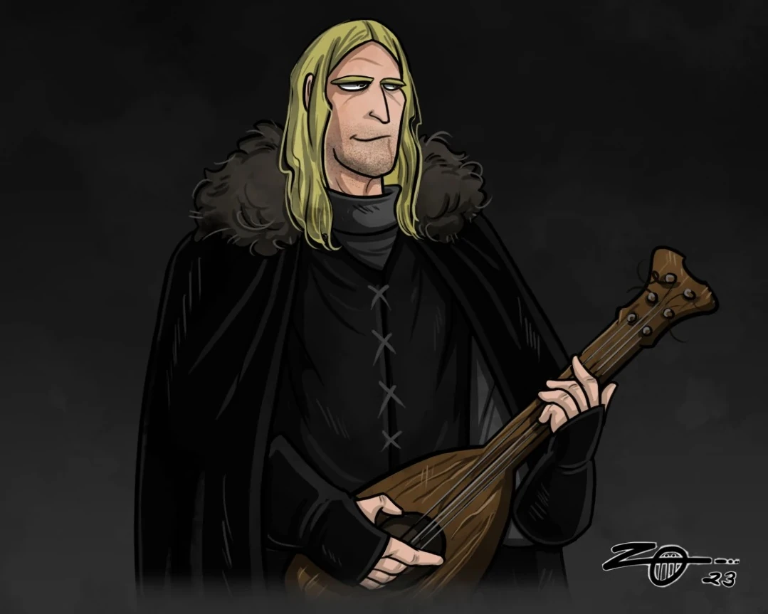 Er hat blondes Haar und braune Augen.[3] Er bewegt sich schnell im Schwertkampf, fürchtet sich jedoch davor, getroffen zu werden[4] und wird daher auch nach langem Training kein guter Schwertkämpfer.[3] Er kann gut singen, weil er früher einmal ein Gesangsschüler war. Maester Aemon sagt, seine Stimme sei wie Honig, den man über einen Donner gießt.[5] Er spielt die Waldharfe und die Fiedel und komponiert sogar eigene Lieder.[3] Er hat ein sehr loses Mundwerk, erst recht, wenn er betrunken ist.[6]