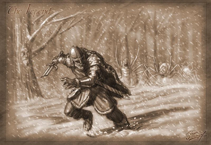 Die Alte Nan erzählt Bran die Geschichte vom Letzten Helden und wie er zuletzt von Eisspinnen, so groß wie Hunde, gejagt wurde.[1]