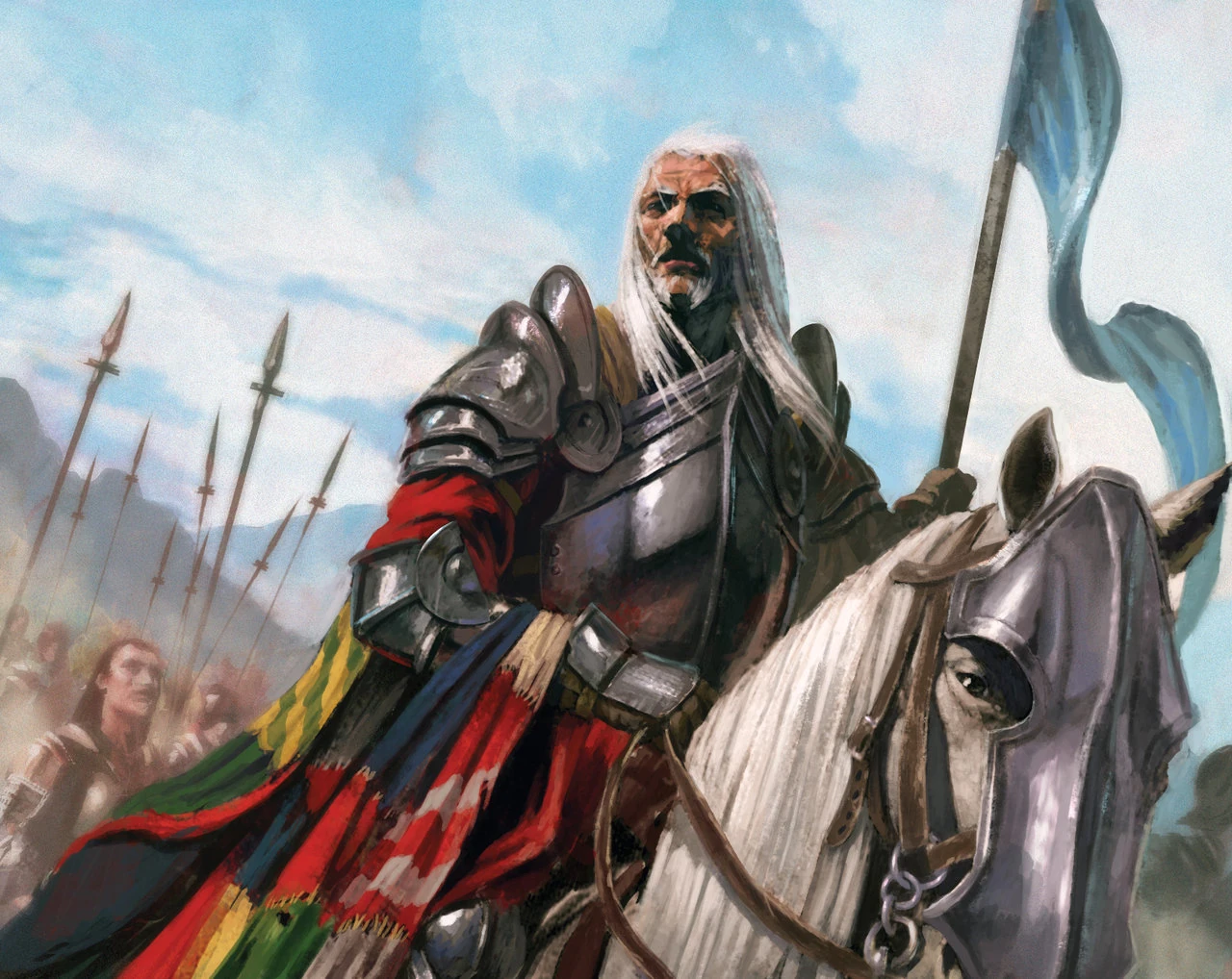 Der Flickenprinz ist ein alter Mann, über 60 Jahre alt, aber immer noch mit starker Stimme und aufrechtem Gang. Für gewöhnlich spricht er aber leise und hat traurige Augen. Sein Haar und sein Kettenhemd sind silbergrau, und seinen Namen erhielt er wegen seinem zerlumpten und aus bunten Stofffetzen zusammengenähten Mantel. Diese Stofffetzen hat er von den Waffenröcken der Männer abgerissen, die er getötet hat, und auch der Stoff der Satteldecke seines riesigen weißen Schlachtrosses ist derart gestaltet. Seine beiden engsten Vertraute sind Caggo und Denzo D'Han.[2]