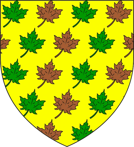Sekundärquellen zufolge zeigt das Wappen des Hauses grüne und braune Ahornblätter auf gelbem Grund.[1]
