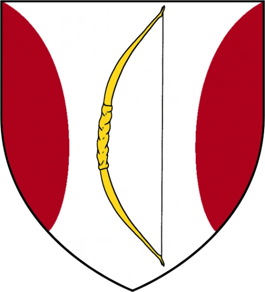 Sekundärquellen zufolge zeigt das Wappen des Hauses einen goldenen Bogen auf weißem Grund zwischen purpurfarbenen Flanken.[2]
