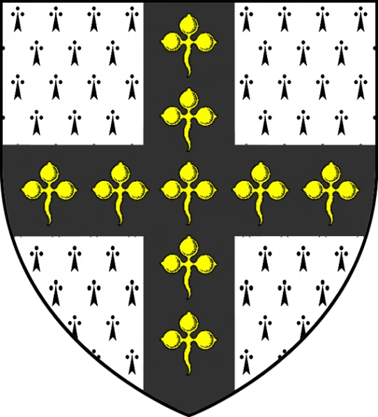 Sekundärquellen zufolge zeigt ihr Wappen neun goldene Kleeblätter auf einem schwarzen Kreuz auf Hermelin.[1]