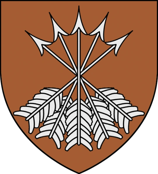 Ihr Wappen zeigt fünf gefächerte Pfeile auf braunem Grund.[3][4]