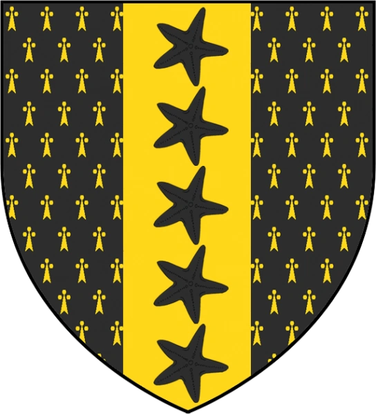 Sekundärquellen zufolge zeigt ihr Wappen auf einem mittigen Balken fünf schwarze Seesterne auf goldenem Grund, links und rechts ein Muster in Hermelin, gold auf schwarzem Grund.[1]