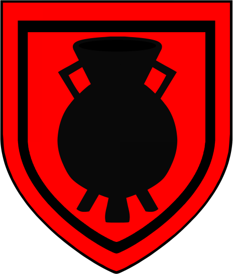 Sekundärquellen zufolge zeigt ihr Wappen einen schwarzen Kessel auf rot mit schwarzer Umrandung.[1]