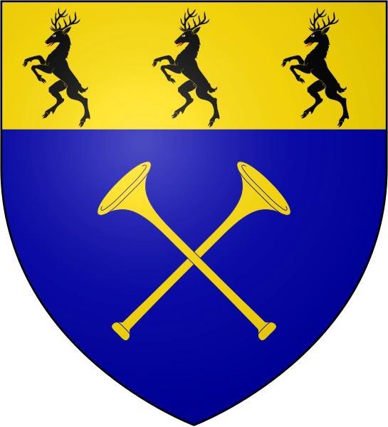Sekundärquellen zufolge zeigt ihr Wappen zwei goldene gekreuzte Trompeten auf blauem Grund unter einem goldenen Balken mit drei schwarzen Hirschen.[1]