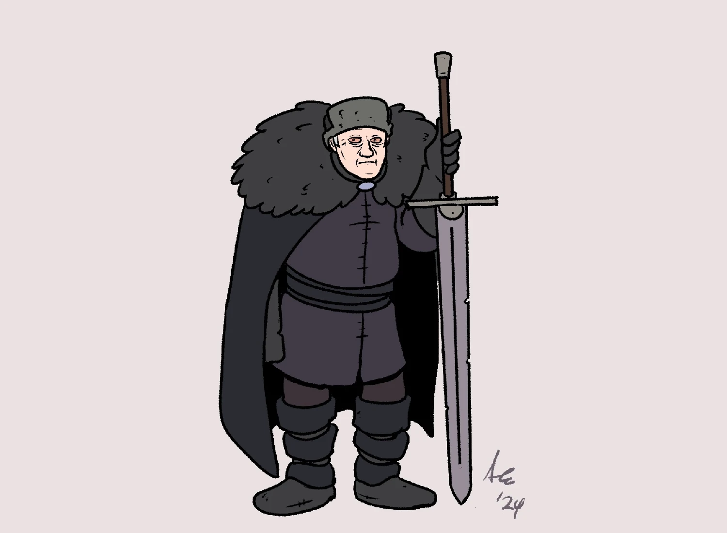 Er ist ein kleiner Mann in Jeor Mormonts Alter, der ständig müde aussieht.[3]
