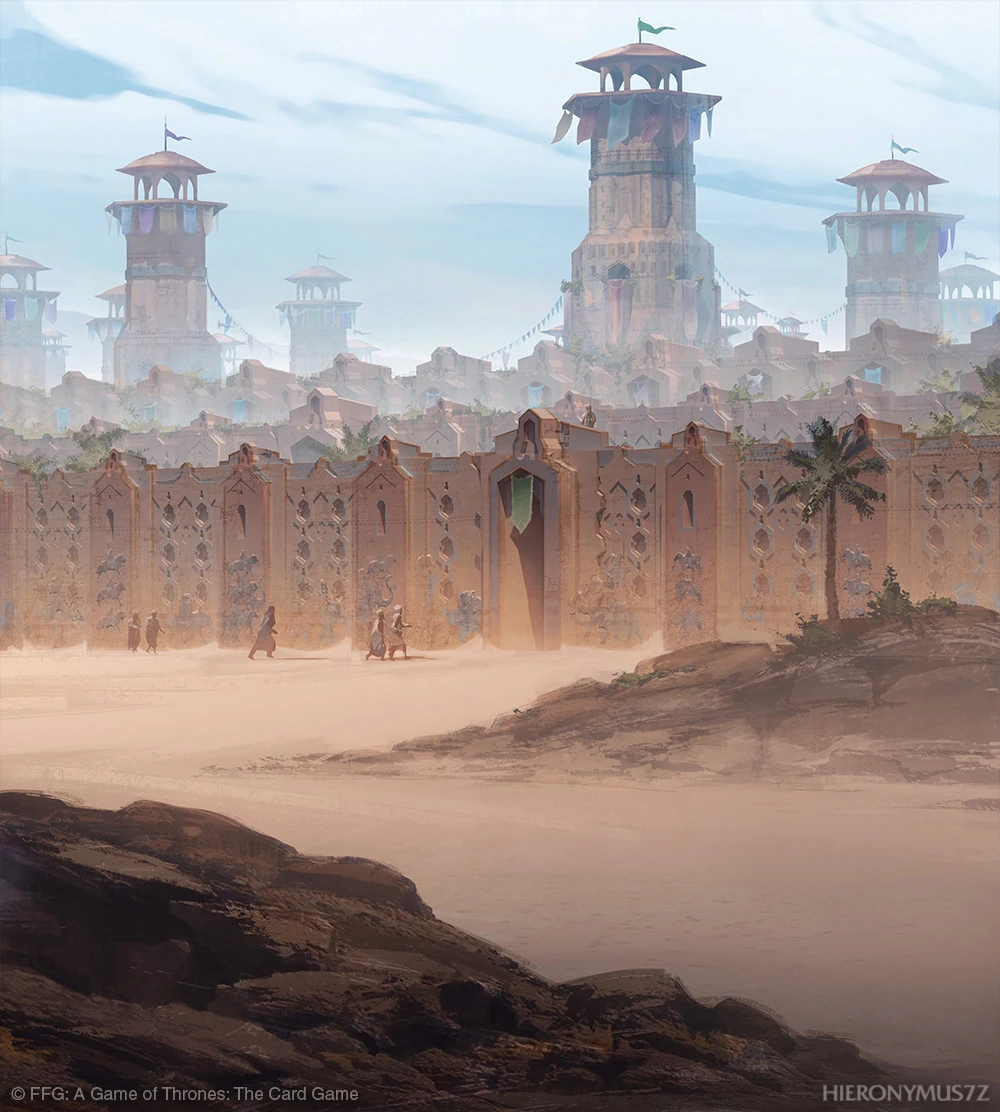 Daenerys führt ihr kleines Khalasar nach Drogos Tod in die Rote Wüste, wo sie nach einiger Zeit auf die Ruinenstadt Vaes Tolorro treffen, von wo aus Daenerys ihre Blutreiter aussendet, um das Land zu erkunden: Jhogo trifft dabei auf die Stadt Quarth, wo er von Daenerys und den Drachen berichtet. Drei Gesandte der Stadt begleiten ihn zurück nach Vaes Tolorro, um die Drachen mit eigenen Augen zu sehen: Pyat Pree, Xaro Xoan Daxos und Quaithe.[3] Von dort aus führen die drei das Khalasar nach Qarth.[3]