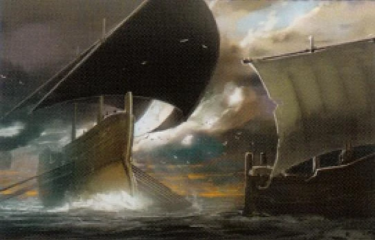 Euron Graufreud schickt Victarion kurz darauf mit den 93 verbliebenen Schiffen der Eisernen Flotte von den Schildinseln in die Sklavenbucht, wo er Daenerys Targaryen suchen soll.[5]