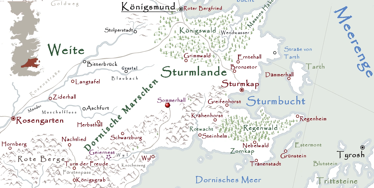 - ↑ Die Welt von Eis und Feuer, Karte von den Sturmlanden