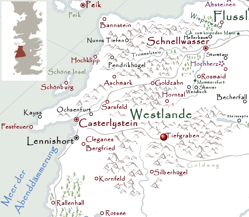 A Clash of Kings, Appendix - ↑ Die Welt von Eis und Feuer, Karte von den Westlanden