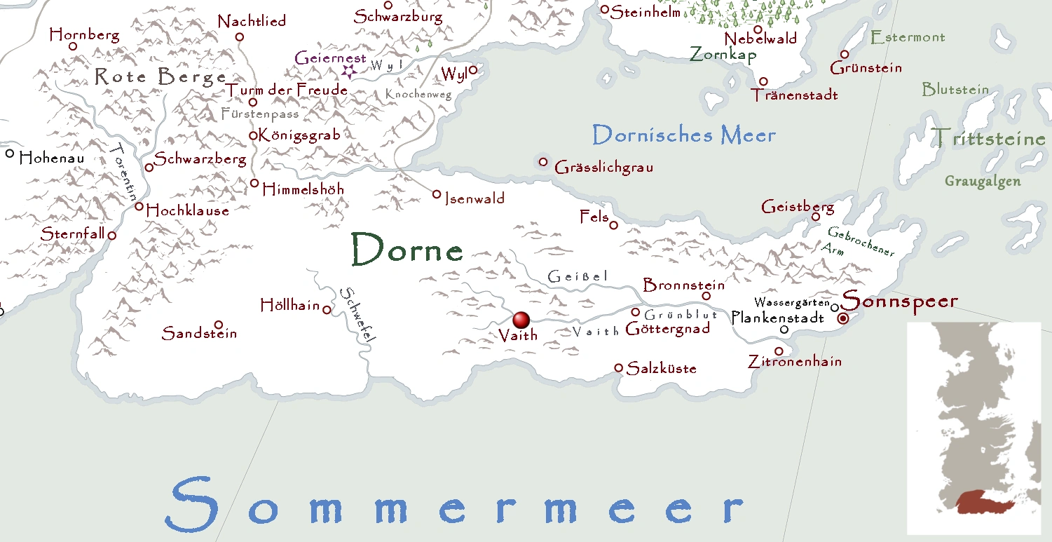 - ↑ Die Welt von Eis und Feuer, Karte von Dorne