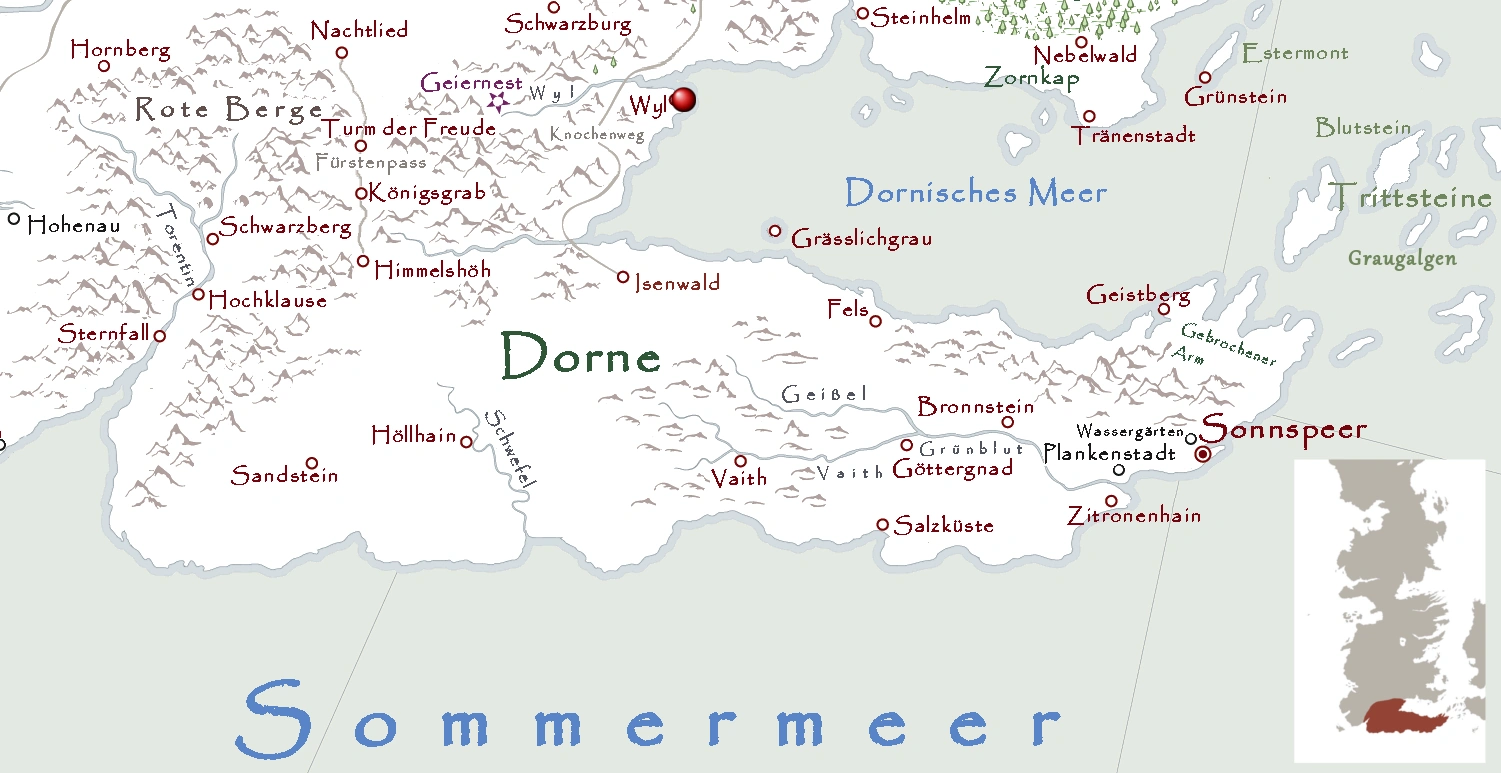 - ↑ Die Welt von Eis und Feuer, Karte von Dorne